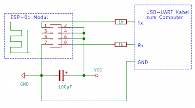 Zum Betrieb des ESP01 müssen VCC mit CH_EN (CH_PD) verbunden sein!